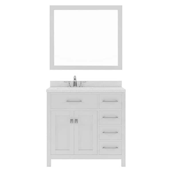 Caroline Parkway 36 in. W x 22 in. D x 35 in. H Single Sink Bath Vanity in White with Quartz Top and Mirror