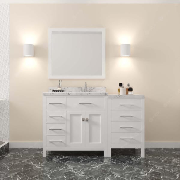 Caroline Parkway 57 in. W x 22 in. D x 35 in. H Single Sink Bath Vanity in White with Quartz Top
