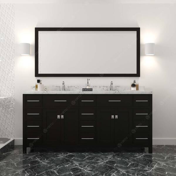 Caroline Parkway 72 in. W x 22 in. D x 35 in. H Double Sink Bath Vanity in Espresso with Quartz Top and Mirror