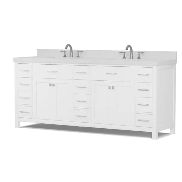 Caroline Parkway 78 in. W x 22 in. D x 35 in. H Double Sink Bath Vanity in White with Quartz Top