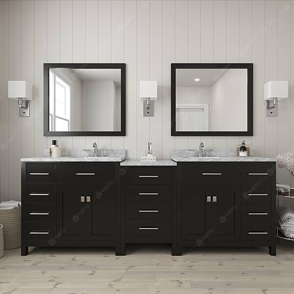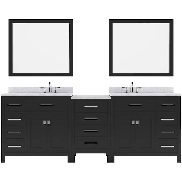 Caroline Parkway 93 in. W x 22 in. D x 35 in. H Double Sink Bath Vanity in Espresso with Marble Top and Mirror