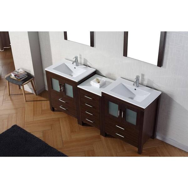 Dior 74 in. W Bath Vanity in Espresso with Ceramic Vanity Top in White with Square Basin and Mirror