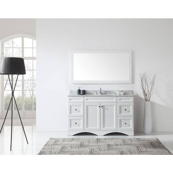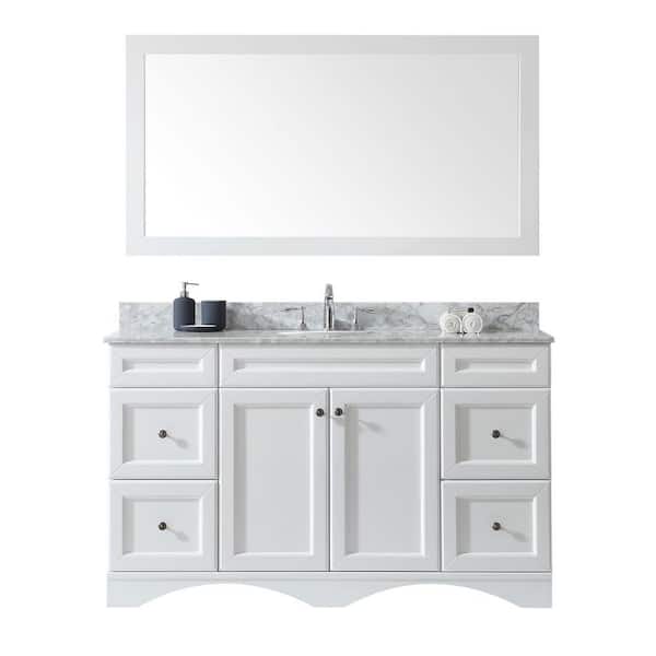 Talisa 60 in. W Bath Vanity in White with Marble Vanity Top in White with Round Basin and Mirror and Faucet
