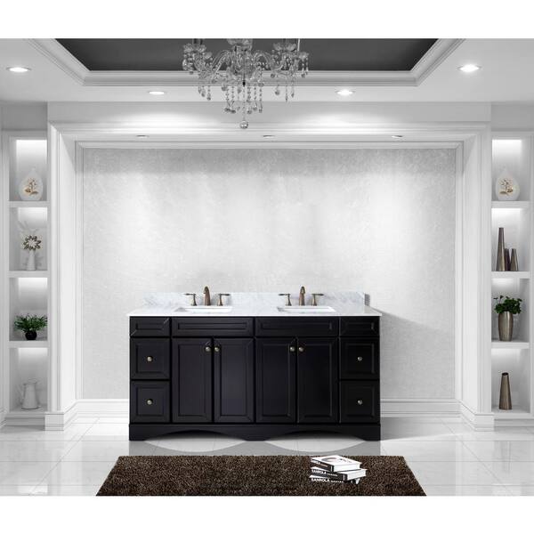 Talisa 72 in. W Bath Vanity in Espresso with Marble Vanity Top in White with Square Basin