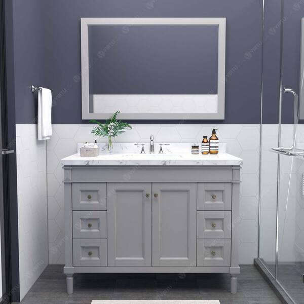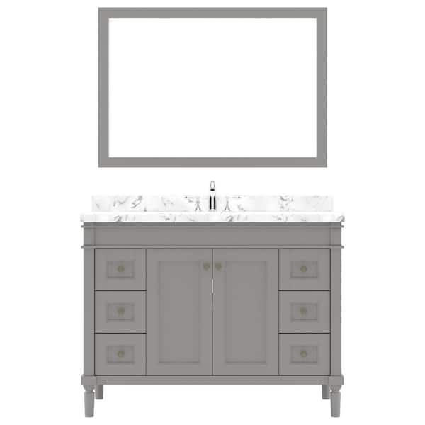Tiffany 48 in. W x 22 in. D x 37 in. H Single Sink Bath Vanity in Gray with Quartz Top and Mirror