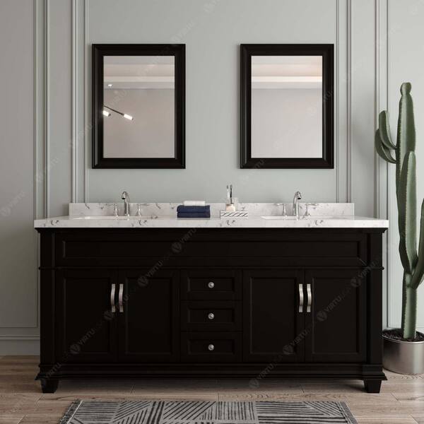 Victoria 72 in. W x 22 in. D x 36 in. H Double Sink Bath Vanity in Espresso with Quartz Top and Mirror