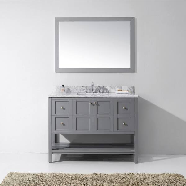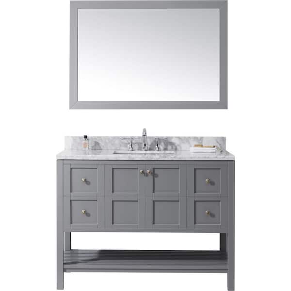 Winterfell 49 in. W Bath Vanity in Gray with Marble Vanity Top in White with Square Basin and Mirror