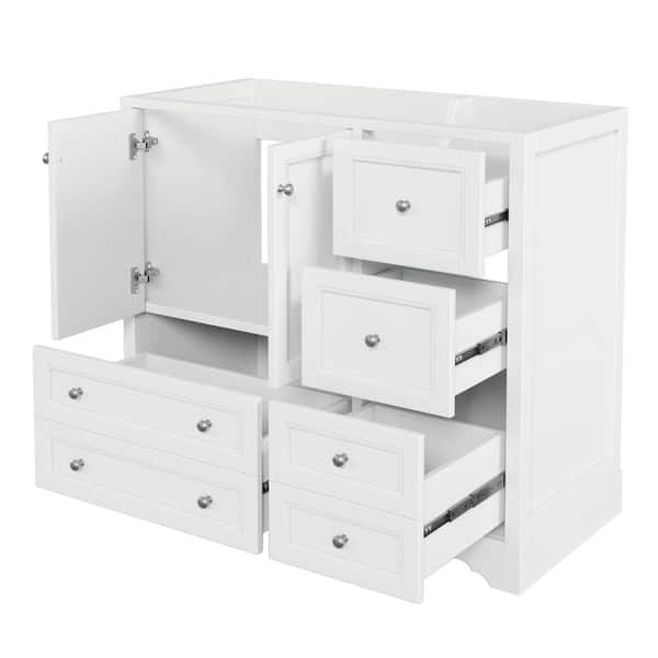 35.43 in. Freestanding Bath Vanity Cabinet without Top in White with Soft Closing Doors, 4 Drawers