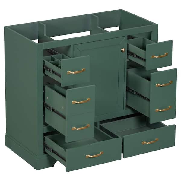 36 in. Bath Vanity Cabinet without Top in Green with 6-Drawers and Adjustable Shelf