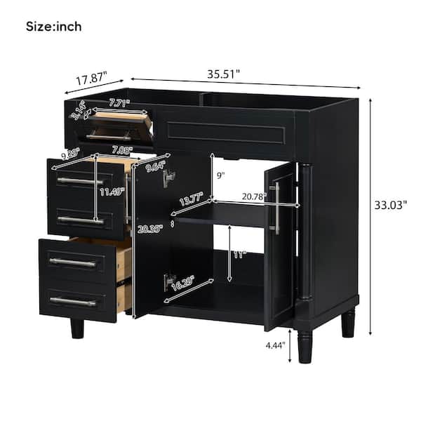 36 in. Freestanding Bath Vanity Cabinet without Top in Black with 2-Drawers, A Tip-Out Drawer and Adjustable Shelf