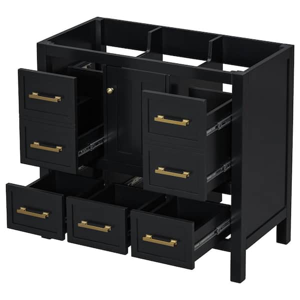 36 in. Freestanding Bath Vanity Cabinet without Top in Black with 5-Drawers and Soft Closing Door