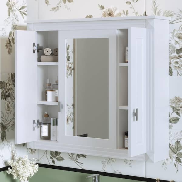 White 35.03 in. W x 28.74 in. H Rectangular Bathroom Wall Mounted Medicine Cabinet with Mirror, Adjustable Shelf