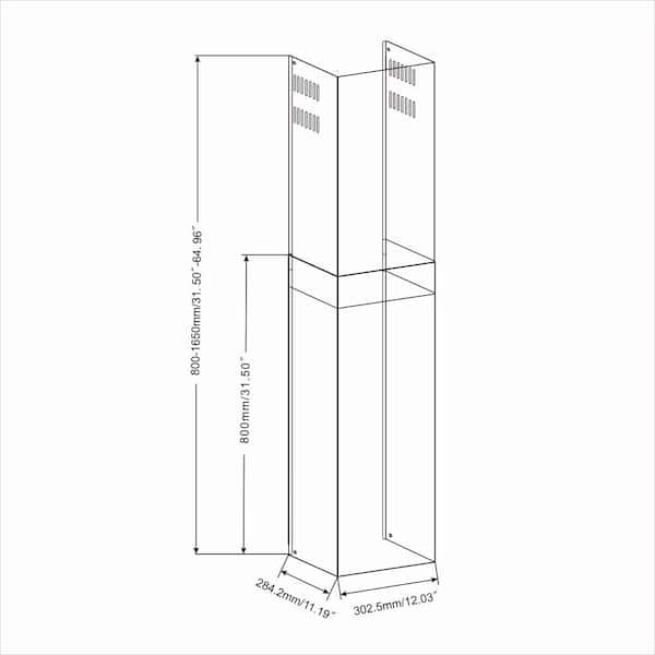 Matte Black Range Hood Chimney Extension for T-shape wall mount