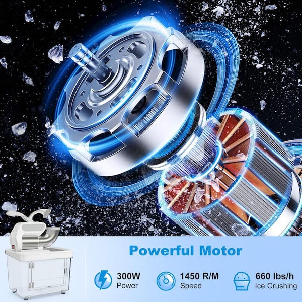 1150 oz. White Snow Cone Machine 300-Watt 660 lbs. /H 300-Watt with Dual Blades and Safety Switch