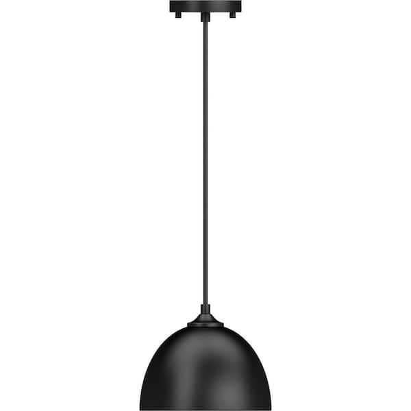 1-Light Black Dome Shaded Pendant Light with Steel Shade