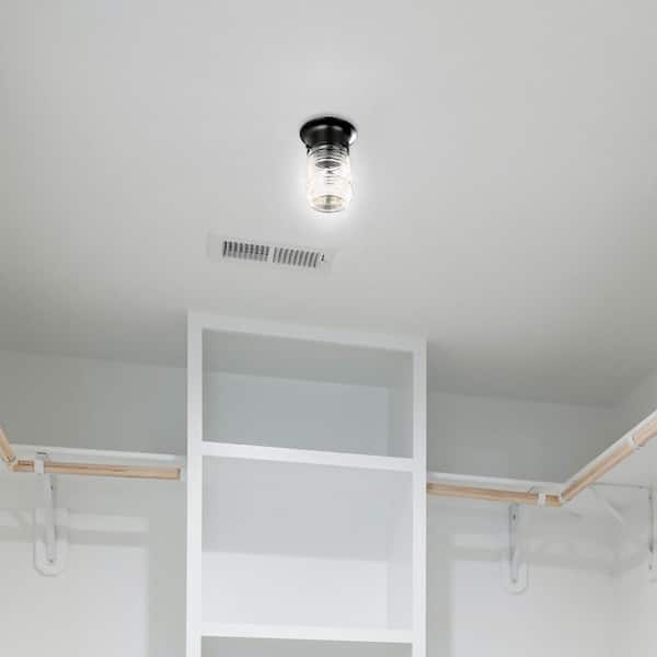 1-Light Indoor Black Flush Mount Ceiling Fixture with Honey / Jelly Glass Jar Shade