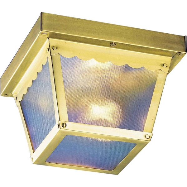 1-Light Outdoor Polished Brass Flush Mount Ceiling Fixture