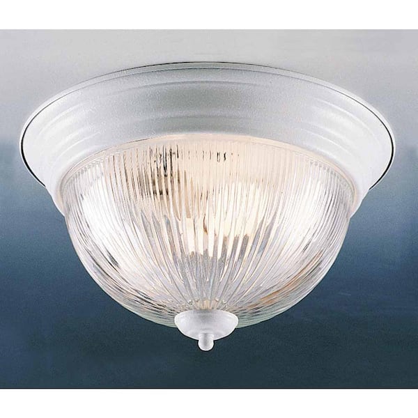 11 in. 2-Light White Indoor Flush Mount with Clear Prismatic Glass Bowl
