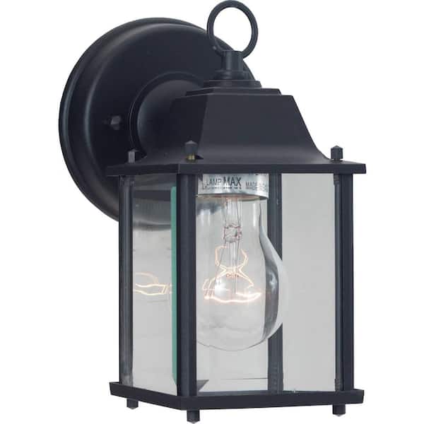 Black Hardwired Outdoor Coach Light Sconce with Clear Glass