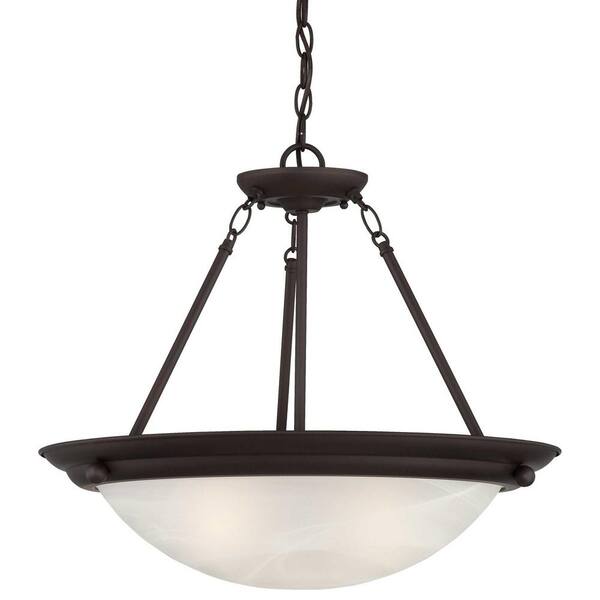 Lunar Collection 4-Light Indoor Antique Bronze Convertible Hanging Pendant/Semi-Flush with Alabaster Glass Bowl Shade