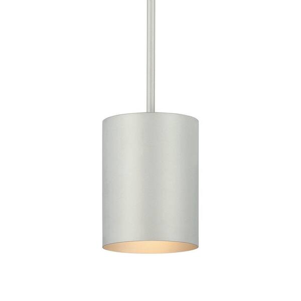 Mini 1-Light Silver Gray Aluminum Integrated LED Indoor/Outdoor Cylinder Downrod Pendant