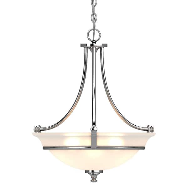 Tes 3-Light Chrome Indoor Hanging Pendant with Frosted Glass Bowl