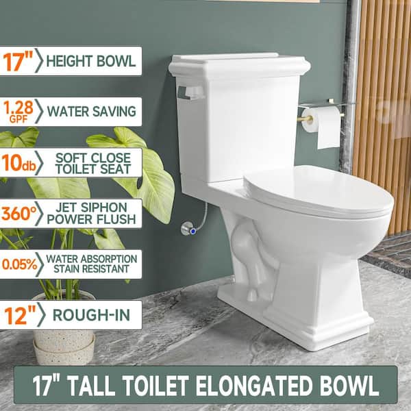 17 in. ADA Chair Height 2-piece Toilet 1.28 GPF Single Flush Elongated Comfort Toilet in White with Seat 12 in. Rough-In