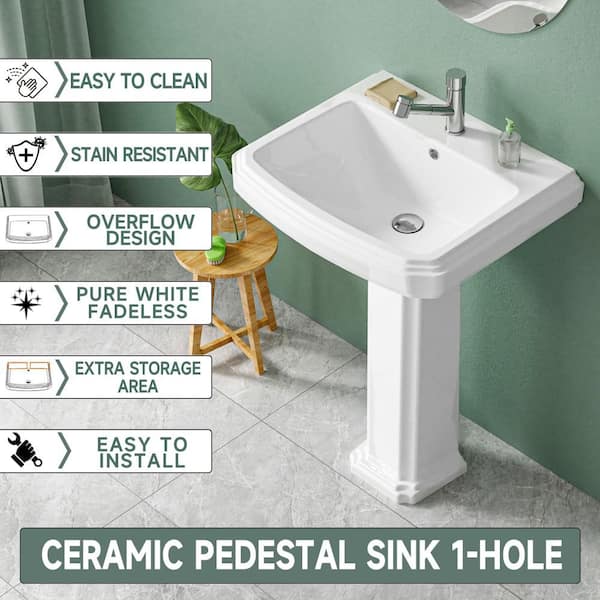 19.25 in. D x 23 in. W Bathroom Pedestal Sink Combo Rectangular Vitreous China in White with Overflow and 1 Faucet Hole