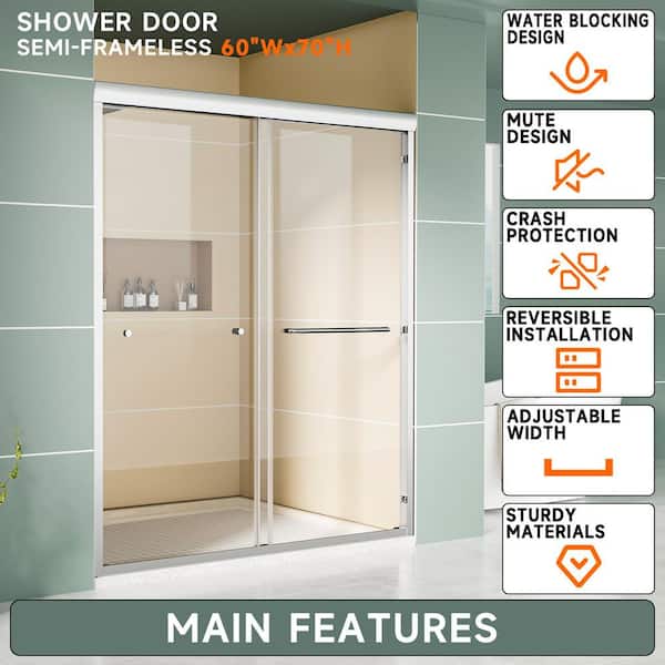 56-60 in. W x 70 in.H Sliding Semi-Frameless Shower Door in Chrome Double Bypass Sliding Shower Door with Tempered Glass