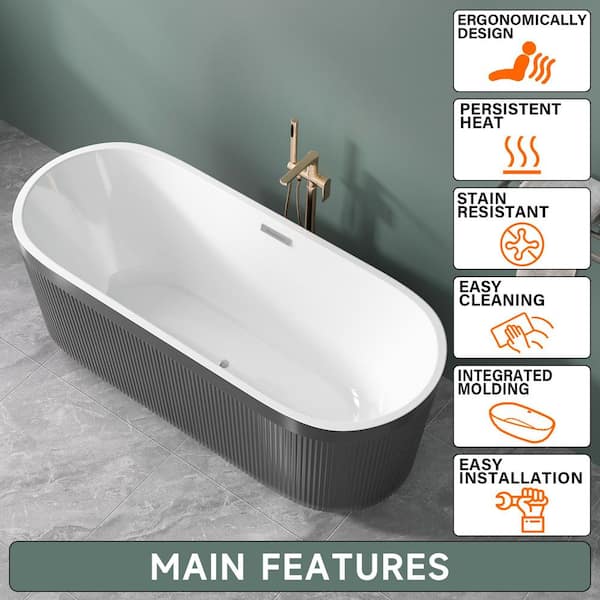 67 in. x 31 in. Acrylic Freestanding Soaking Bathtub with Unique Pleated Design in Black Brushed Nickel Pop-Up Drain