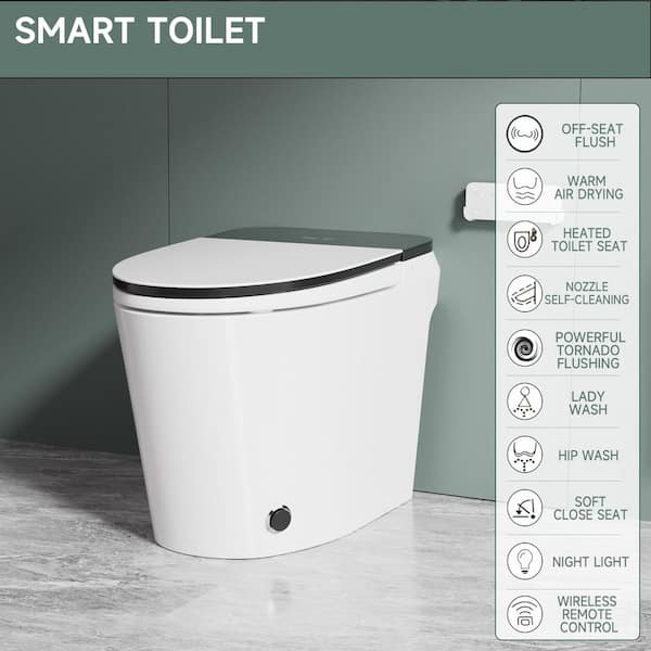 ADA Elongated Smart Toilet Bidet in White with Foot Kick Flush Warm Air Dryer Heated Seat 1.28 GPF and Night Light