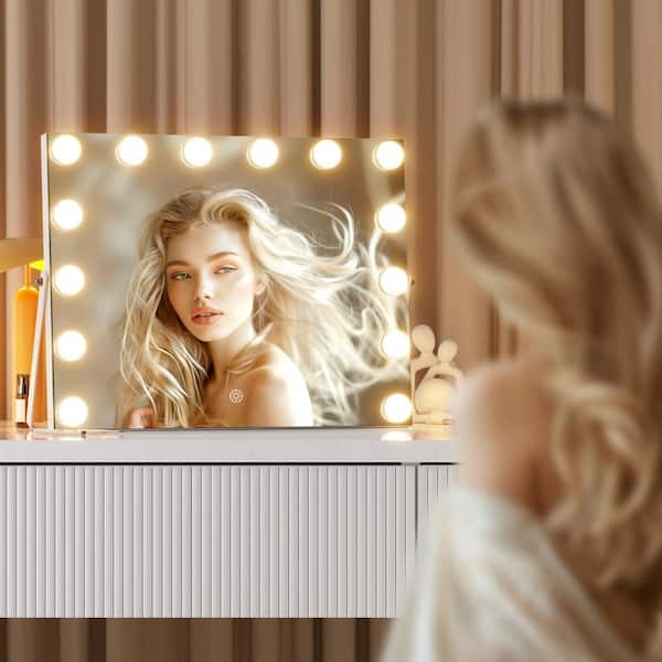 17.7 in. W x 13.8 in. H White Rectangle Framed LED Makeup Mirror Hollywood Vanity Mirror with Lights 360° Rotation