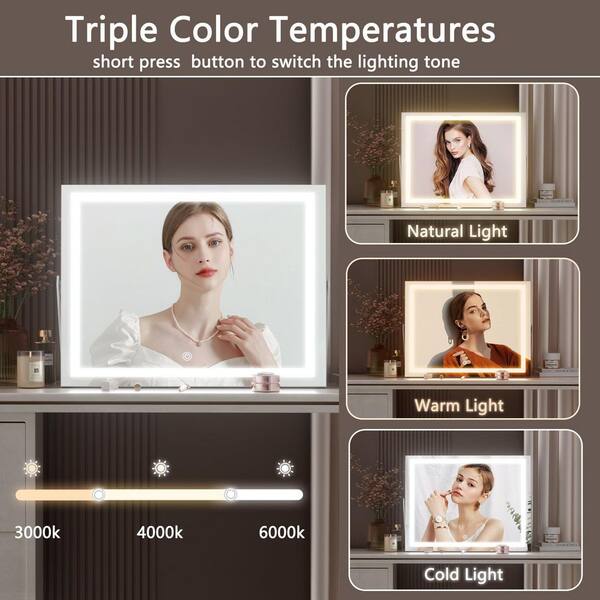 White 14 in W x 11 in. H Rectangle LED Makeup Mirror with 5X Magnifying Glass Vanity Mirror with Lights, 360°Rotation