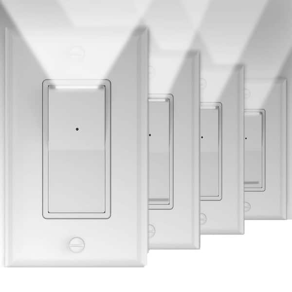 1-Way 15A Light On-Off-On Push Button Light Switch in White with Automatic Light Sensor and Night Light 4-Pack