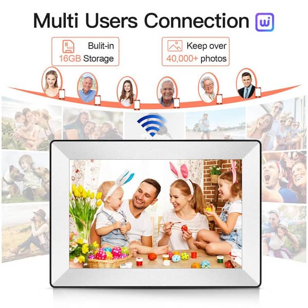 10.1 in. White WiFi Digital Picture Frame 1280 x 800P IPS HD Color Touch Screen Built-in 16GB Storage with Share App