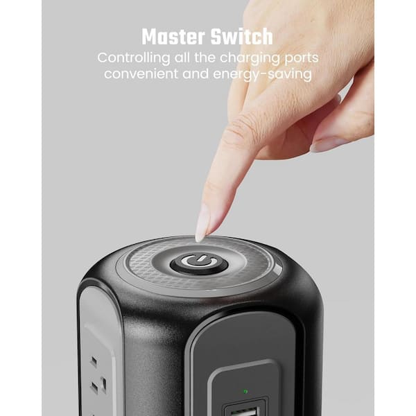 10 ft. Power Strip Tower 9-Outlet AC 1080-Joules Surge Protector Extension Cord with 4-USB Ports and 3-Prong, Grounded