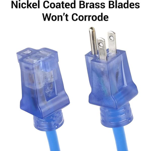 100 ft. 16/3 1 SJTW Extreme Cold Weather Outdoor Extension Cord with Lighted End, Power Indicator Light, Blue