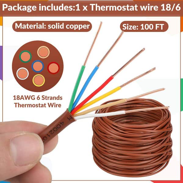 100 ft. 18/6 Gauge Solid Copper Thermostat Wire Cable, ETL Approved, Moisture, for Low Voltage Applications