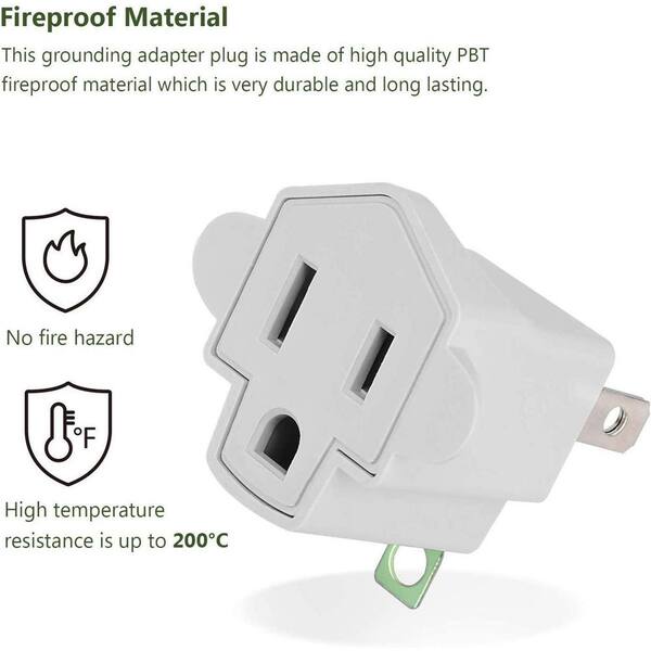 125-Volt Electrical Wall Adapter Outlet Converter 3 Prong to 2 Prong Polarized Grounding Fireproof Material 6-Pack