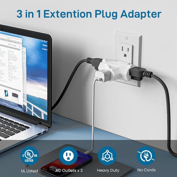 15 Amp 125-Volt 3 Prong 3 Way Power Splitter Plug Extender Adapter 3-Pack
