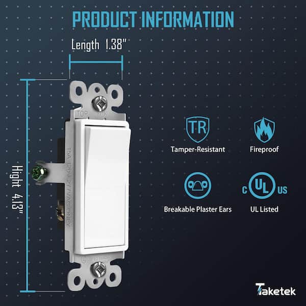15 Amp 3-Way Decorator Paddle Electrical Rocker Light Switch, White 20-Pack