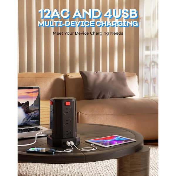 16.4 ft. Long Extension Cord 12-Outlet AC 1700 Joules Power Strip Surge Protector with 4 USB Ports 1 USB C