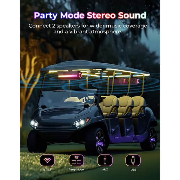 16 in. IP66 Waterproof BT UTV/ATV Sound Bar Speaker with Audio Music Sync Multicolor Light Fit for 1''-2'' Roll Bar Cage
