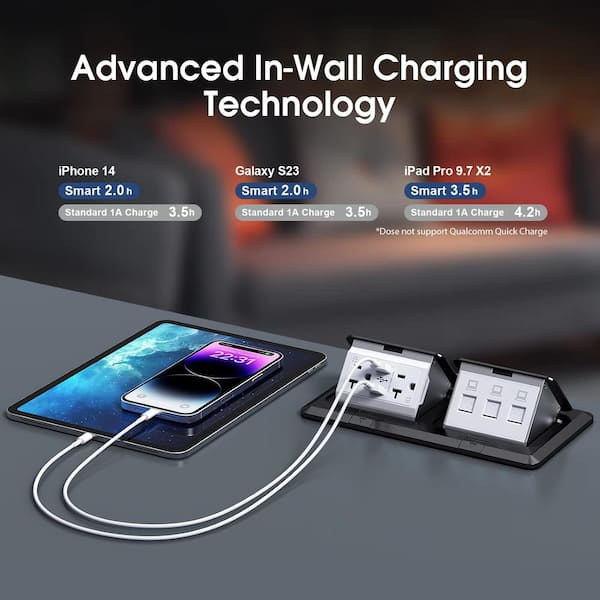 20-Amp Dual Pop-Up Floor Electrical Outlet Box IP44 Waterproof with 2-USB A Ports