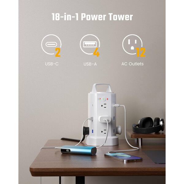 6.5 ft. Extension Cord 12-Outlet AC Widely Spaced 2100 Joules Surge Protector with 4 USB-A and 2 USB-C Charger