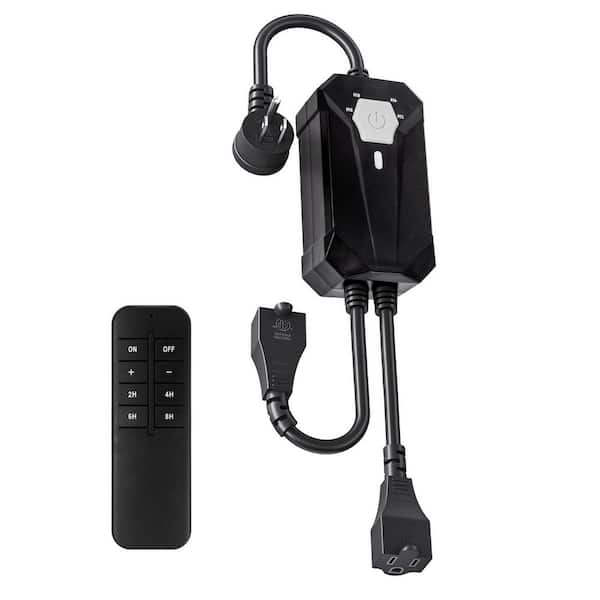 85V-265V Waterproof Black 2-Outlet Timer Dimmer Switch for String Light Timer with Remote 2H/4H/6H/8H Timer for Outdoor