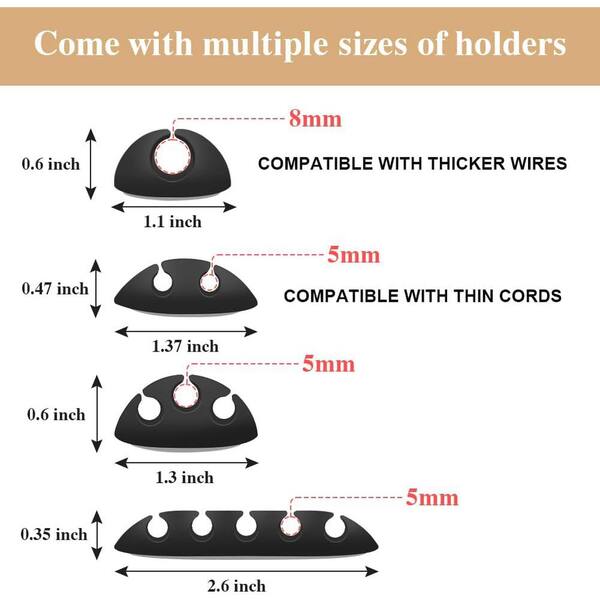 Black Cord Organizer Adhesive Cord Management Wire Holder for Organizing Phones Chargers Desk Nightstand Car (16-Pack)
