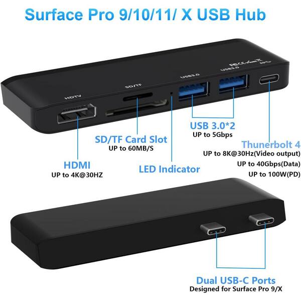 Docking Station with 4K HDMI, USB-C Thunerbolt 4 (Display+Data+PD Charging), 2 USB 3.0, SD/TF Card Reader