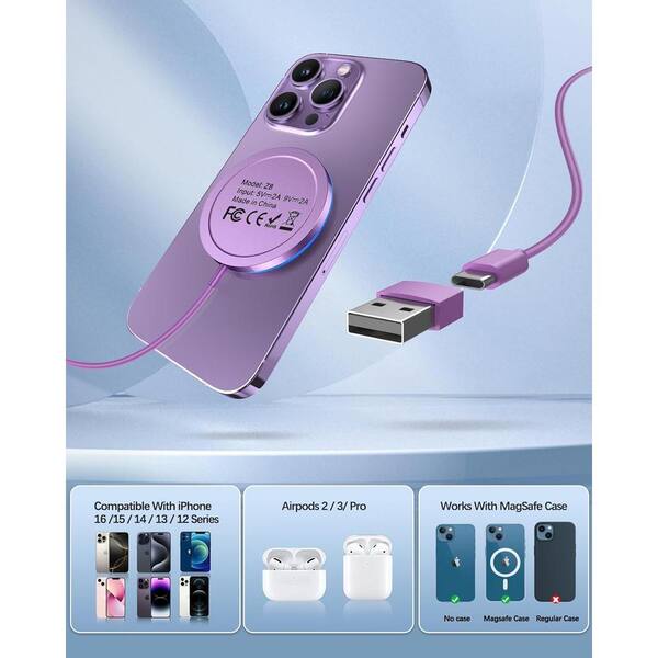 Magnetic Wireless Charger Fast Apple Mag-Safe Charger, Purple Finish