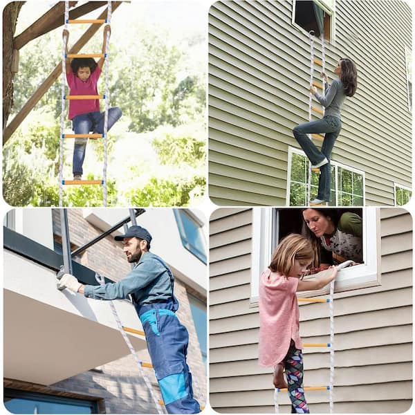 Rope Ladder, 9. 8 ft. Fire Escape Ladder for 2-Story, Flame Retardant Safety Rope Ladder with Hooks and Emergency Ladder